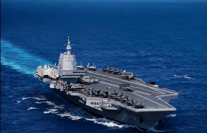 排水量八万吨级,接管电磁弹射和破碎安装,平纵贯长遨游船面,能搭载约五十架舰载机,包括歼-15T隐形型号和空警-600预警机。