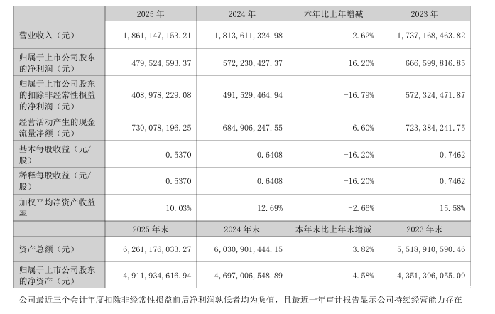 3月28日,欧普康视科技股份有限公司(300595.SZ以下简称“欧普康视”)交出了其2025年的收获单。敷陈期内,公司完满买卖收入18.61亿元,归母净利润4.79亿元,同比下滑16.20%。相较2024年归母净利润14.16%的降幅,2025年利润端压力进一步加重。