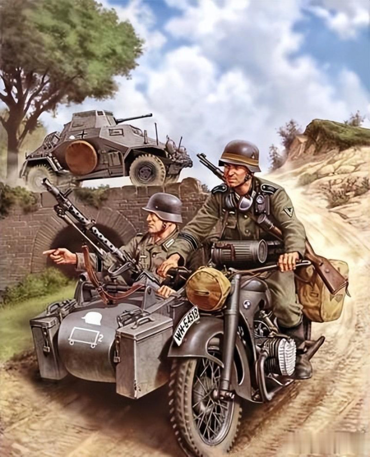 德国东说念主相比求实,他们想了个拆分任务的想法。近处的政策侦察,还沿用传统马队,毕竟马的地形相宜性强,山林池沼都能跑。远少许的战役侦察,就用新研发的摩托车和轻型坦克车,速率快,能袒护更大限制。