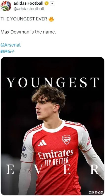 Opta统计,16岁73天的说念曼成为了英超历史上最年青的进球者,虽然同期亦然阿森纳队史最年青的英超进球者!