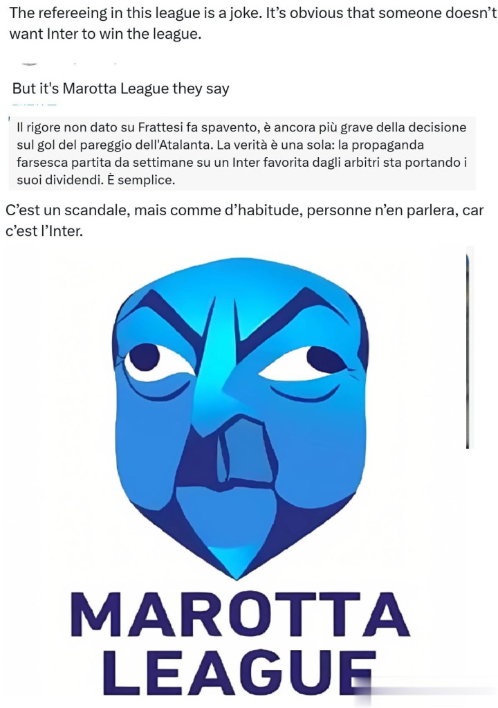 有的说“这个联赛的裁判是个见笑”。有的说“但他们说这是马洛塔联赛”。更多的东谈主,相称是那些使用英语、法语、西班牙语的球迷,都在示意“我为我看了多年这个联赛而感到无比忸怩”。