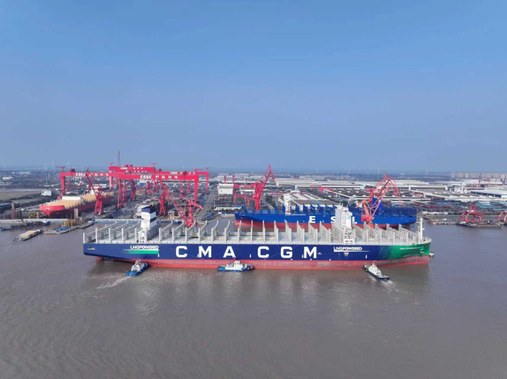 达飞集团关系东说念主士示意,沪东中华配置的4艘民众最大24000TEU级液化自然气(LNG)双燃料能源集装箱船对达飞集团道理超卓,在推动达飞集团能源转型及民众航运脱碳程度中线路了至关进军的作用。