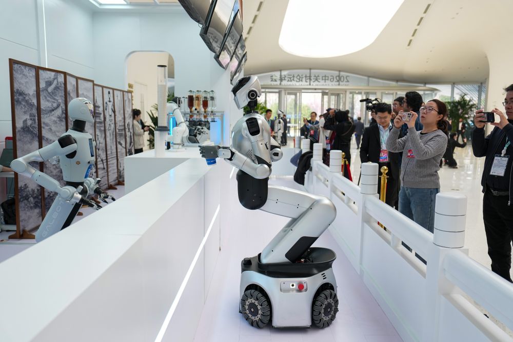 3月25日,在中关村海外创新中心,嘉宾在参不雅机器东谈主餐吧。 新华社记者 鞠焕宗 摄
