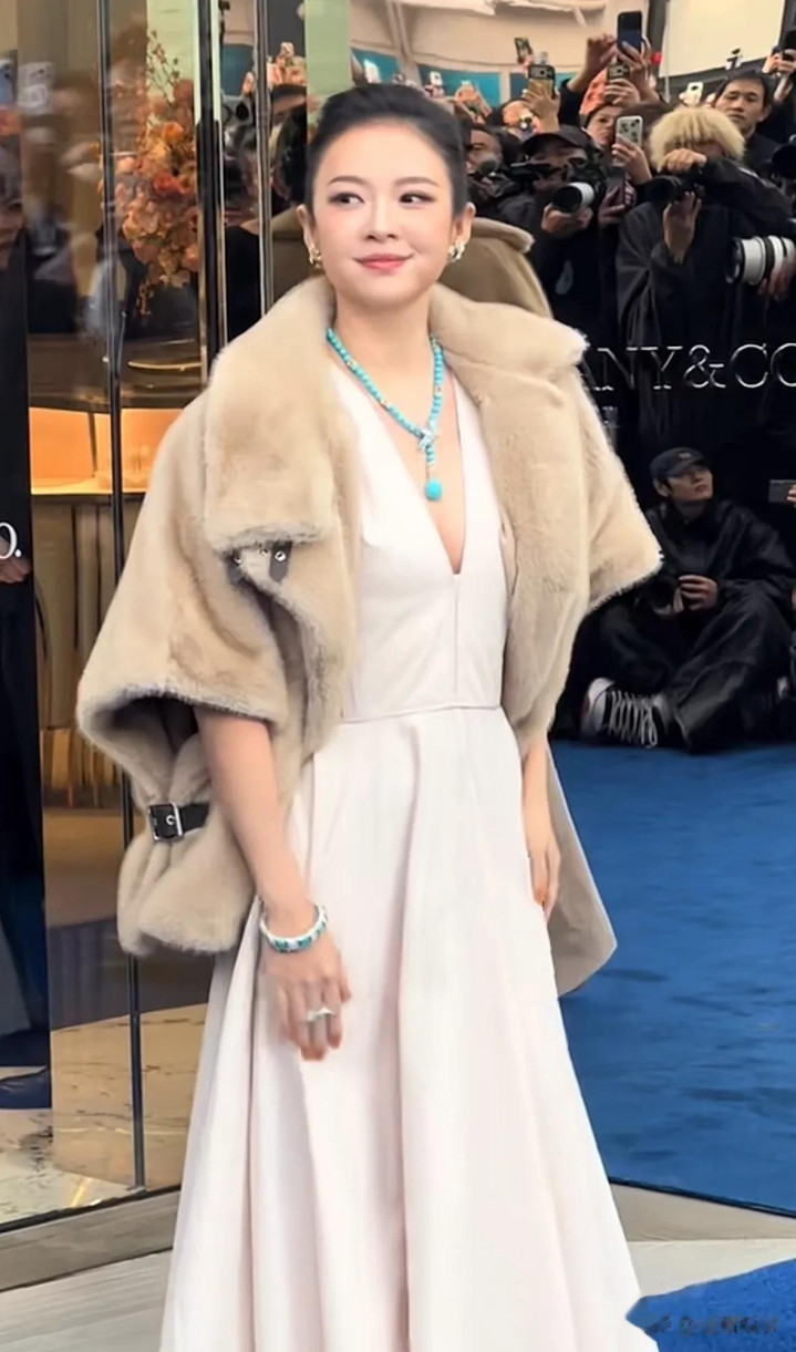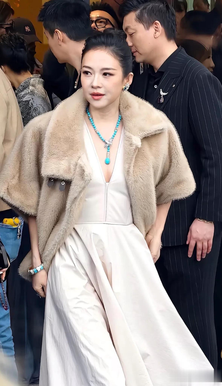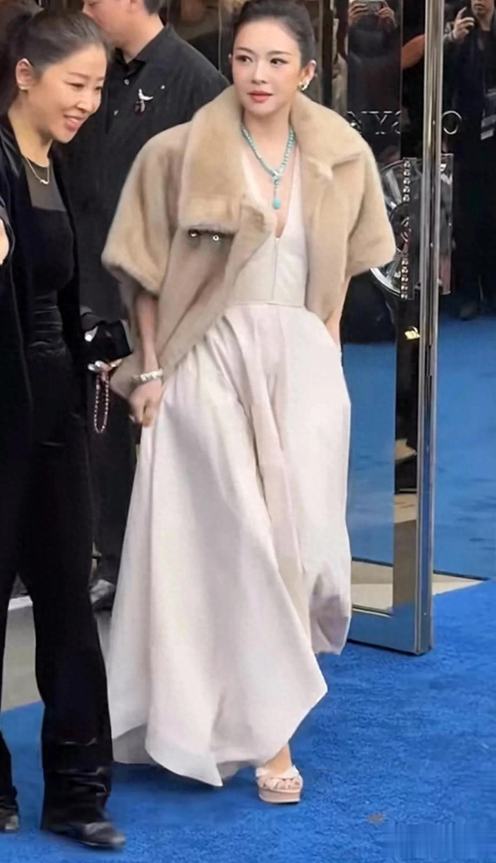 章子怡气场高出,排面透彻,红毯之上她压轴登场,风范刺眼,大合影时,她稳稳立于品牌高层身畔,占据C位,尽显顶级明星的尊崇地位,当日,她身着一条米深V长裙,颈间垂挂着硕大的蓝坚持,耳畔珠宝熠熠生辉,外披一袭灰色皮草,周身高下散漫着雍容富贵之气,将贵气证实得长篇大论。