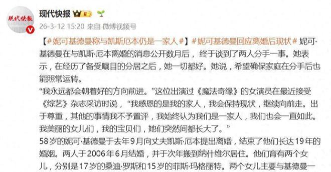 比起那些仳离后互撕、让孩子沦为公论器具的案例,妮可和厄本的惩处方式显得尤为澄莹。网友筹商谈:“这才是成年东谈主该有的格式,把对孩子的伤害降到最低。”“体面分离,共同育儿,内核显露。”