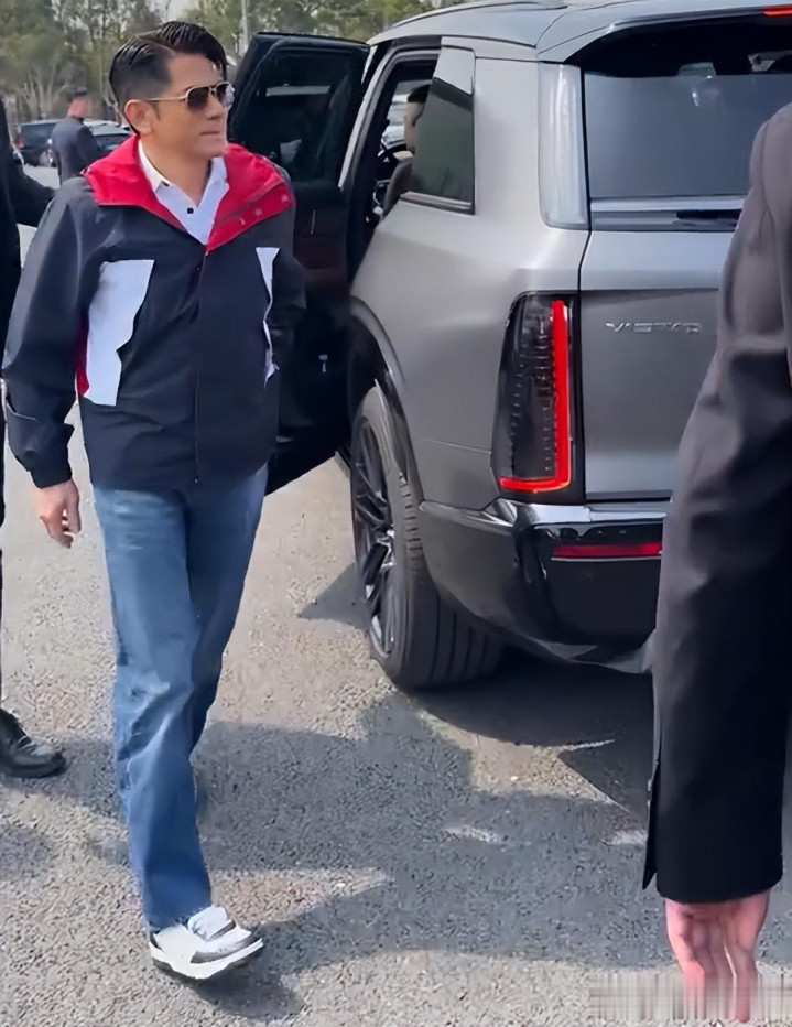 3月15日,郭富城亮相f1中国大奖赛活动现场。郭富城衣服白色的打底衫搭配牛仔长裤,外搭深色的冲锋衣外衣,他梳着三七分的发型,戴着墨镜,看起来很悠闲又略带几分机械立场的酷飒。