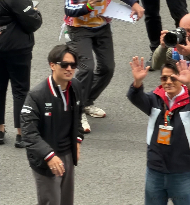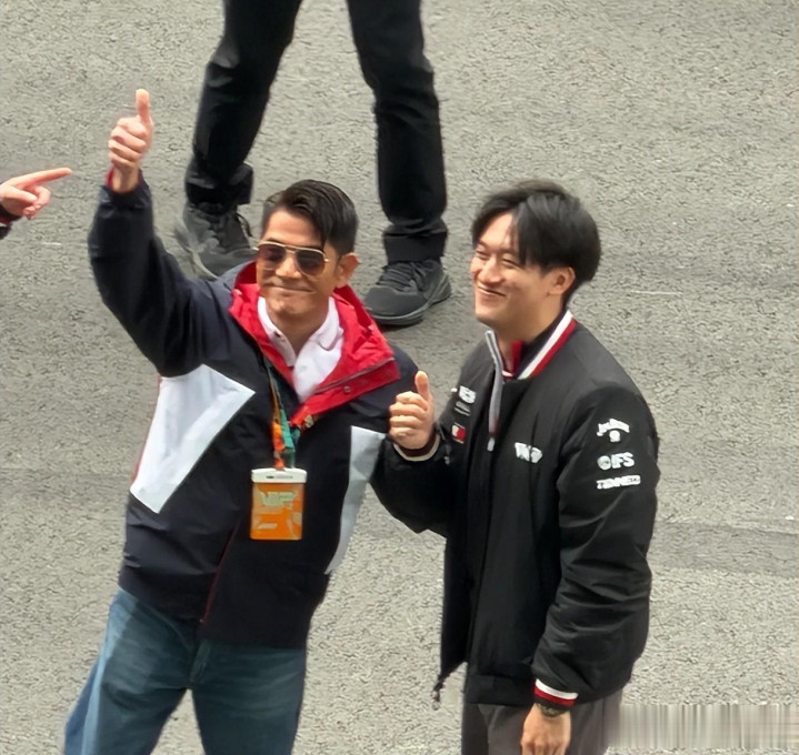 在活动现场中,郭富城与赛车手周冠宇见面交谈,两东谈主还一齐合影。郭富城在意到现场有东谈主在看他们,于是冲着不雅看台的位置,对着不雅众比出点赞的手势,暗意他身边的这位赛车手很猛烈。
