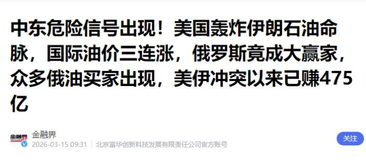 金融界:中东危境信号出现!好意思国轰炸伊朗石油命根子,国外油价三连涨,俄罗斯竟成大赢家,无边俄油买家出现,好意思伊冲突以来已赚475亿
