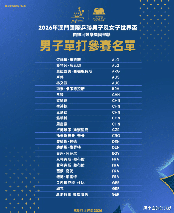 林诗栋在3月14日飞往成王人收受两周的阻塞练习,因为国乒在3月30日要参与2026年澳门寰球杯,林诗栋在重庆冠军赛选拔了退赛养伤,换言之2月28日在新加坡大满贯被小勒淘汰后林诗栋就一直在休息,他有了足足30天的康复时刻。
