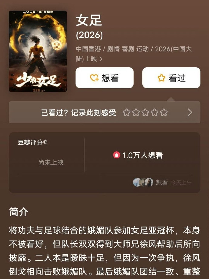 2026 年 3 月 25 日,周星驰暌违 6 年的导演新作《女足》(原名《少林女足》)官宣定档暑期档,借力好意思加墨全国杯热度打造功夫与足球跨界大片。音书仍是发布,关系话题 2 小时内阅读量破 8 亿,猫眼想看东谈主数激增 50 万,成为暑期档爆款候选。
