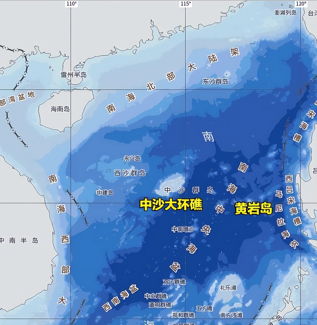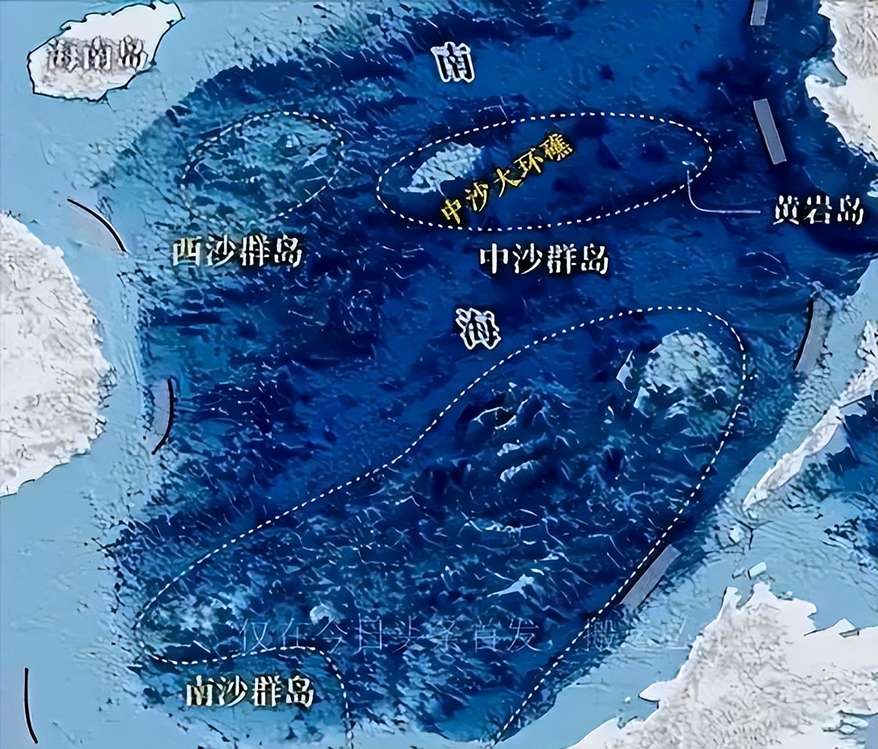 在中沙大环礁的大陆架里头,起码埋着5亿吨的石油加上8000亿方的自然气。
