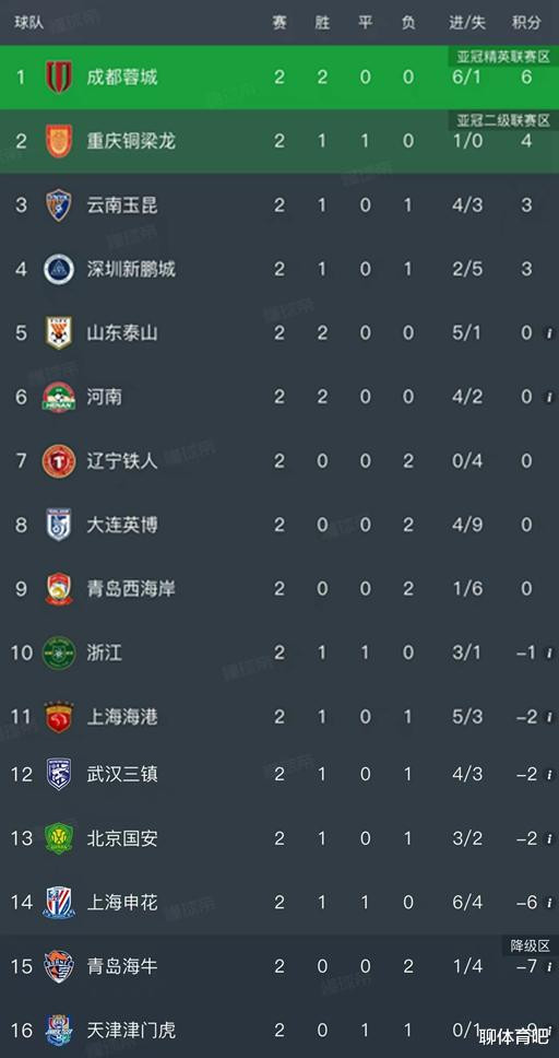 北京本领3月16日,昨天跟着成皆蓉城1-0青岛海牛,上海海港4-1大捷青岛西海岸,中超第二轮规模了悉数比赛,咱们望望最新积分榜变动!
